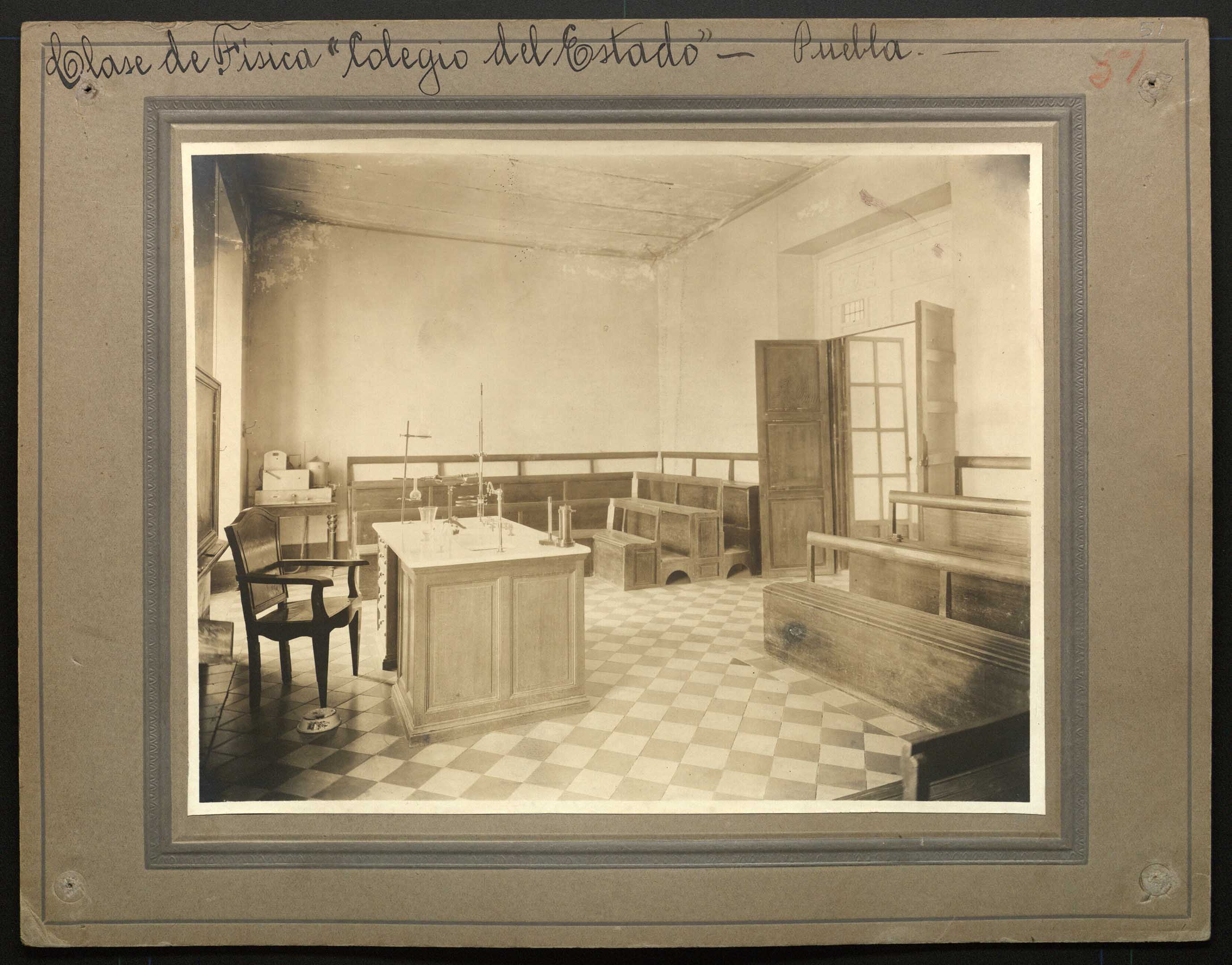 Vista frontal de un salón de clases de Física del Colegio del Estado de Puebla