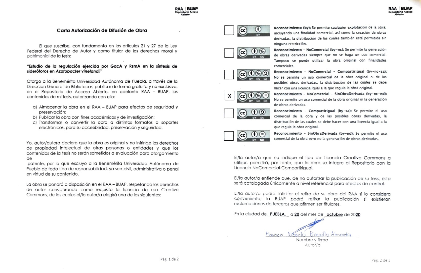"En el presente estudio se generaron mutantes de A. vinelandii en los genes gacA