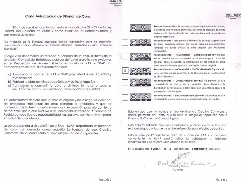 La violencia en la literatura mexicana: análisis comparativo entre los personajes principales de Crónica Mexicana de Hernando Alvarado Tezozómoc y Pedro Páramo de Juan Rulfo
