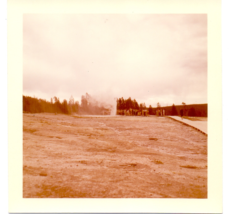 Paisaje Géiser con personas de fondo, Parque Nacional Yellowstone, Wyoming, Estados Unidos