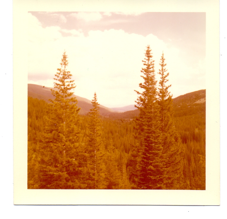 Pinos, montañas a lo lejos