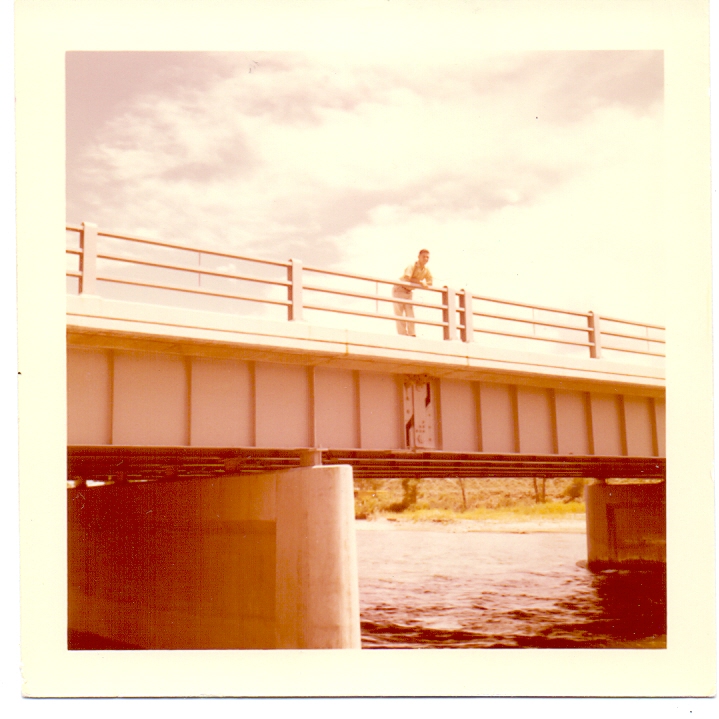 Puente de Teton Park, hombre desconocido posando sobre el barandal