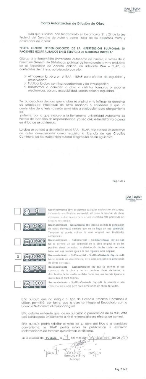 “La Hipertensión pulmonar es una enfermedad compleja y progresiva, de etiología muy heterogénea, caracterizada por el aumento progresivo de la resistencia vascular pulmonar que conduce a fallo del ventrículo derecho y muerte prematura. Hasta el momento la evidencia de esta enfermedad es escasa y proviene de países desarrollados; en México se desconoce la carga epidemiológica. El diagnóstico de la HP es un proceso escalonado que parte de la sospecha clínica, requiere confirmación diagnóstica, identificación de la etiología específica y culmina con la evaluación de la gravedad (mediante parámetros clínicos, ecocardiográficos, hemodinámicos, biomarcadores y de capacidad de ejercicio), aspecto clave en la elección del tratamiento y seguimiento de los pacientes. Se realizó un estudio descriptivo, observacional, transversal y retrospectivo en pacientes hospitalizados en el servicio de Medicina Interna en el periodo de enero de 2017 a diciembre de 2018. El análisis estadístico se realizó mediante el programa SPSS V 23. La mayoría de características coinciden con los registros epidemiológicos más importantes, las diferencias encontradas se justifican por los criterios ecocardiográficos usados, el momento de diagnóstico y de referencia, y la diferencias sociodemográficas de un país subdesarrollado como el nuestro y los países desarrollados de donde provienen los datos epidemiológicos hasta el momento.”