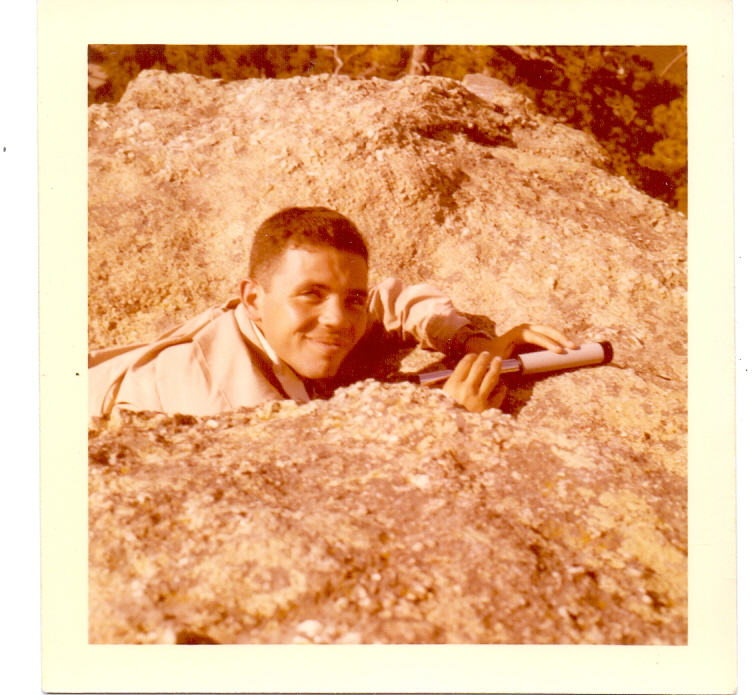 Hombre de frente, con telescopio, Dakota del Sur, Estados Unidos
