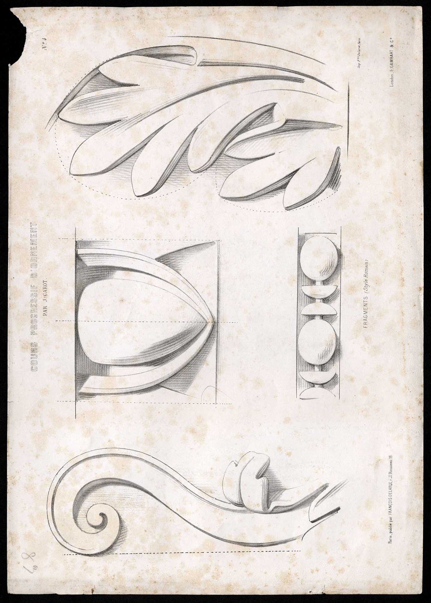 | dc.description.notes | Estampa perteneciente a la obra: Cours progressif d’ornement : composé sur les meilleurs modèles de chaque époque et d'après nature / par J. Carot. Impreso en París por François Delarue y en Londres por E. Gambart & Co. aproximadamente en 1870 | Centro superior: COURS PROGRESSIF D´ORNEMENT PAR J. CAROT. Esquina superior derecha: No. 4. Esquina inferior izquierda: Paris, publié par FRANÇOIS DELARUE, r. JJ. Rousseau 18. Centro inferior: FRAGMENTS (Style Romain). Esquina inferior derecha: Imp. F.ois Delarue, Paris. Abajo: London, E. GAMBART & Co. | Manuscrito a lápiz: 83 | |